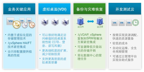 唯一一種面向虛擬機(jī)和容器的經(jīng)過(guò)閃存優(yōu)化的 vSphere 嵌入式存儲(chǔ),可將 TCO 降低 50%